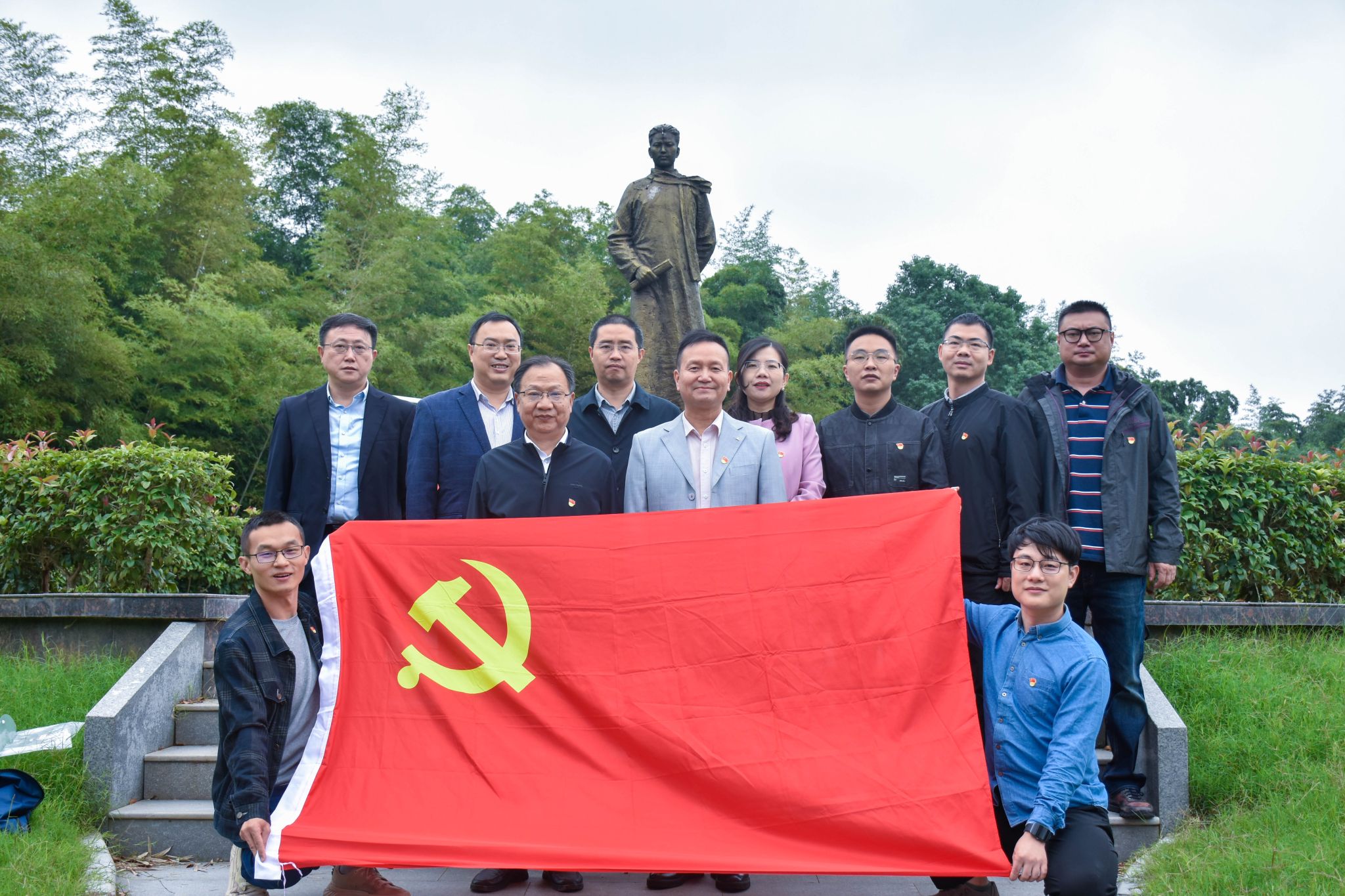 最后,全体成员来到公司优秀员工中共早期党员、工人运动领袖、首届中纪委委员许白昊雕像前面,面向党旗,举起右拳,重温入党誓词,用铿锵的字句、激昂的声音表达了坚定不移听党话跟党走,秉持清廉本身,坚守初心担使命,接续奋斗再出发的坚定意志与决心。